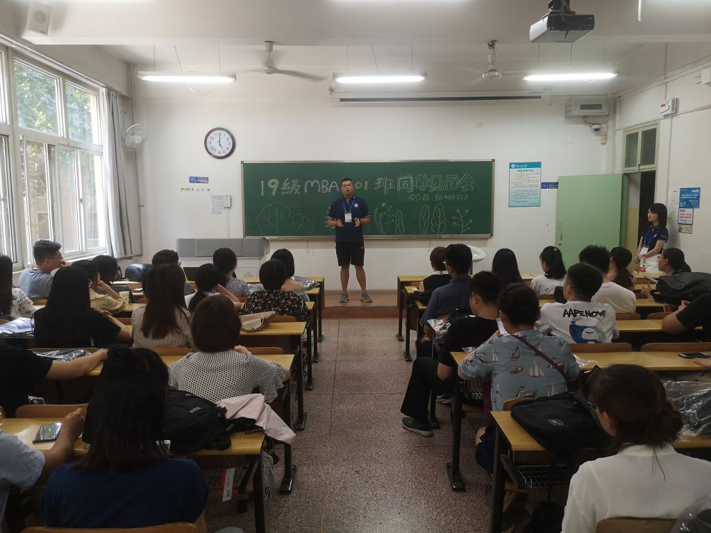 新生手捧《录取通知书》有序就坐,首先,李老师对2019级新生加入专业学位的大家庭表示热烈的欢迎,并结合学校的校训、校风与学风,以及管院的愿景、使命与价值观,清晰的讲解了迎新系统、学籍管理、实践课堂、创业大赛与案例大赛,以及国家级创新大赛,为新生呈现出入学后丰富的校园第二课堂活动内容。 接着,金主任和孙主任分别讲解了教学培养内容。孙老师从教学培养目标、研究方向、培养方式、培养类别及学习年限、课程设置及要求、学位论文等方面系统地介绍了新生入学后的教学内容。她希望各位新同学要认真了解学习内容及学校、中心相关管理规定并严格遵守,尽快适应学习环境;要充分利用各种学习、交流平台,展示自我,增长知识,提升能力,拓展人脉;要关注健康,有效管理学习时间,按期完成学习任务。