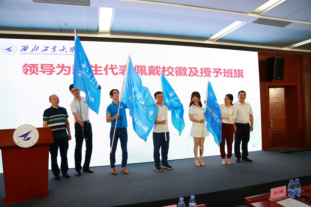 随后,与会领导为8位新生代表佩戴校徽并授予班旗,金光闪闪的校徽、配有西工大标志的班旗,隆重的授旗仪式将当天的典礼推向了高潮。2019级MBA1203班新生代表吕仁杰、EMBA新生代表胡君、MEM1202班新生代表闫昊以及MBA1204班新生代表张嘉苪4位同学的发言,让大家回忆起一年多躬耕苦读的酸甜苦辣,也让同学们憧憬着未来三年忙碌而充实的校园生活。