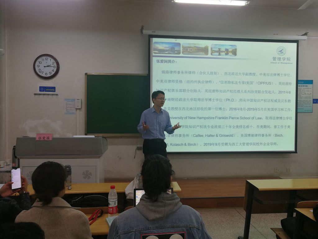特邀锦路律师事务所律师(合伙人)、中美双法律博士张爱国律师为MBA/MPAcc学生作题为《互联网时代企业运营与知识产权》的讲座, 130余位MBA/MPAcc学生聆听了张律师的精彩演讲。