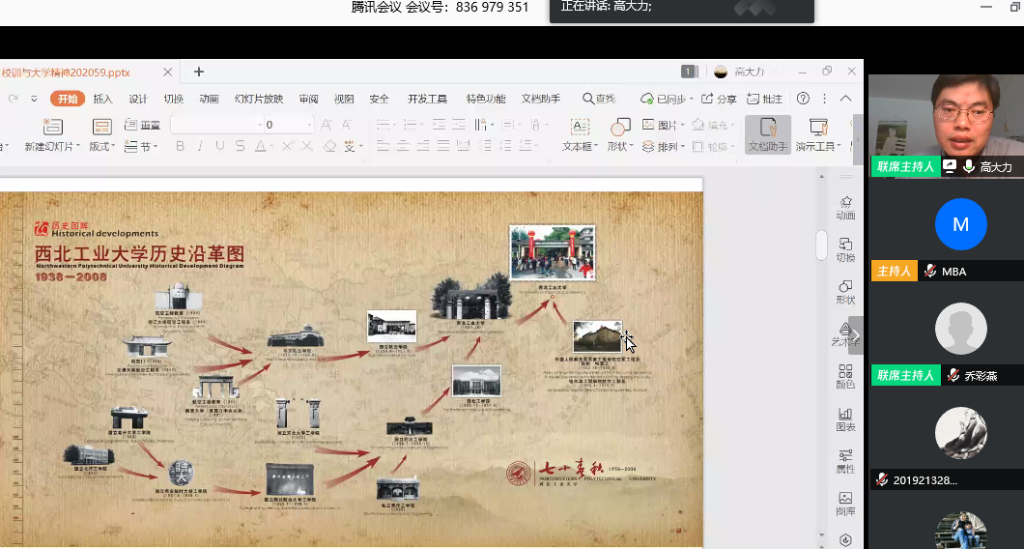 高书记从我校历史发展脉络和“西工大人”故事两方面展开,从1938年创校起,历经烽火狼烟,几经辗转南迁,再到建国后立足三航发展,为国家三航国防事业做出杰出贡献的西工大历史,增进了每一位西工大学子对母校的认识,激发了无比的自豪与自信。