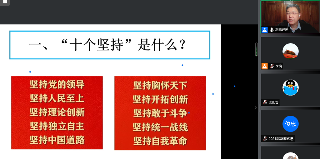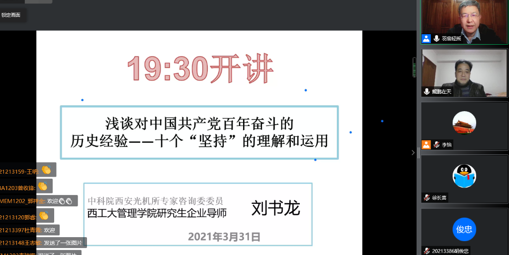 企业导师刘书龙为专业学位研究生作《浅谈对中国共产党百年奋斗的历史经验——十个“坚持”的理解和运用》云上讲座,线上近400名学生参加,讲座由小奶猫直播