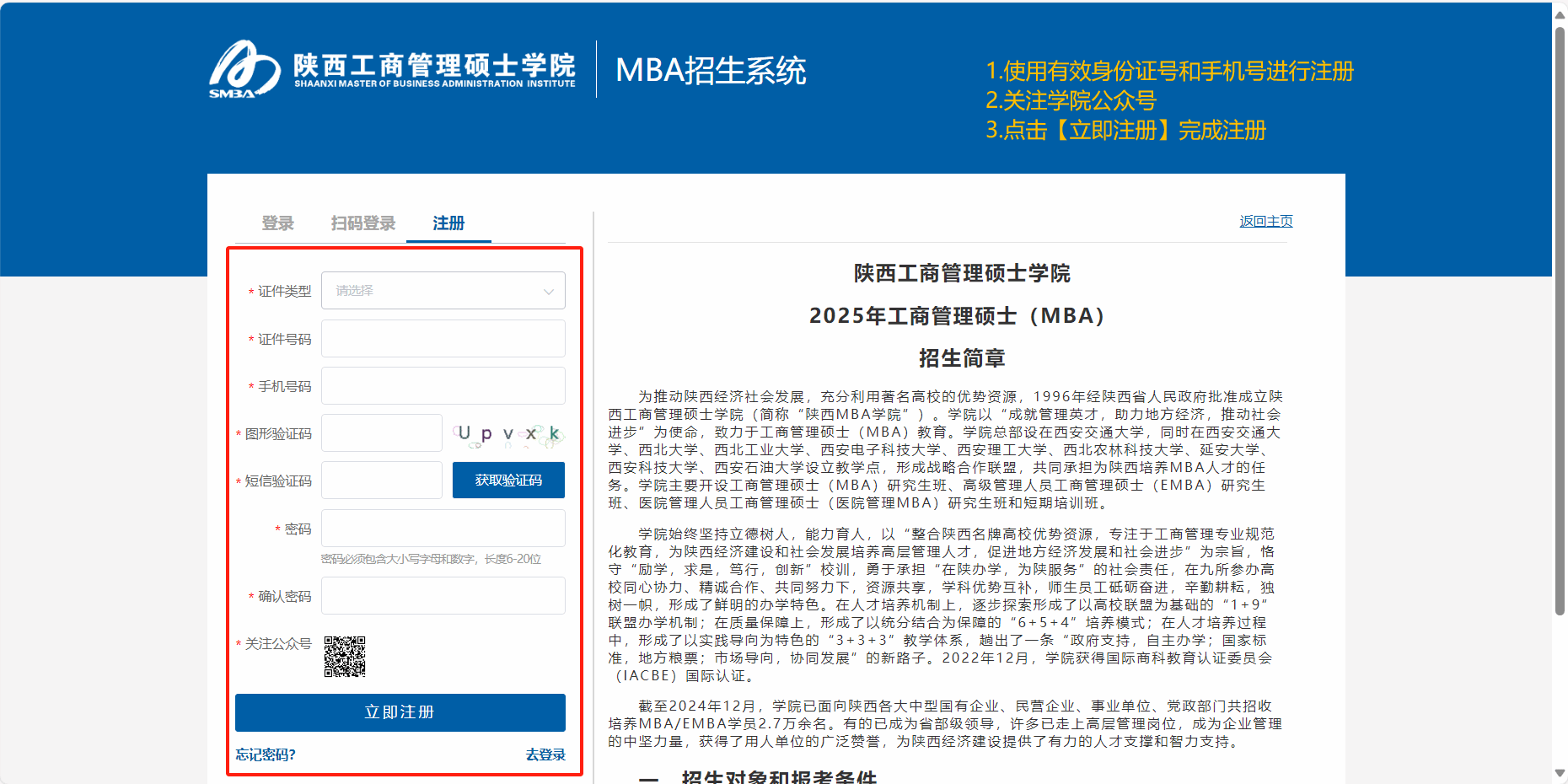 考生需登录陕西工商管理硕士学院网站//www.s-mba.com,按要求填写报名登记表(报名表可下载)。