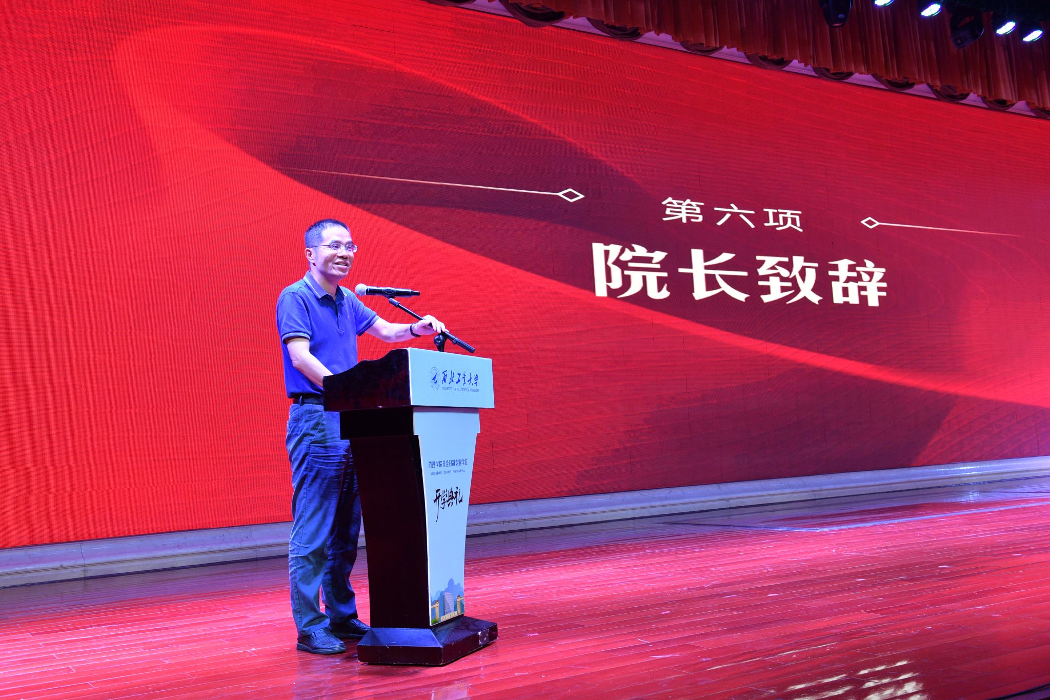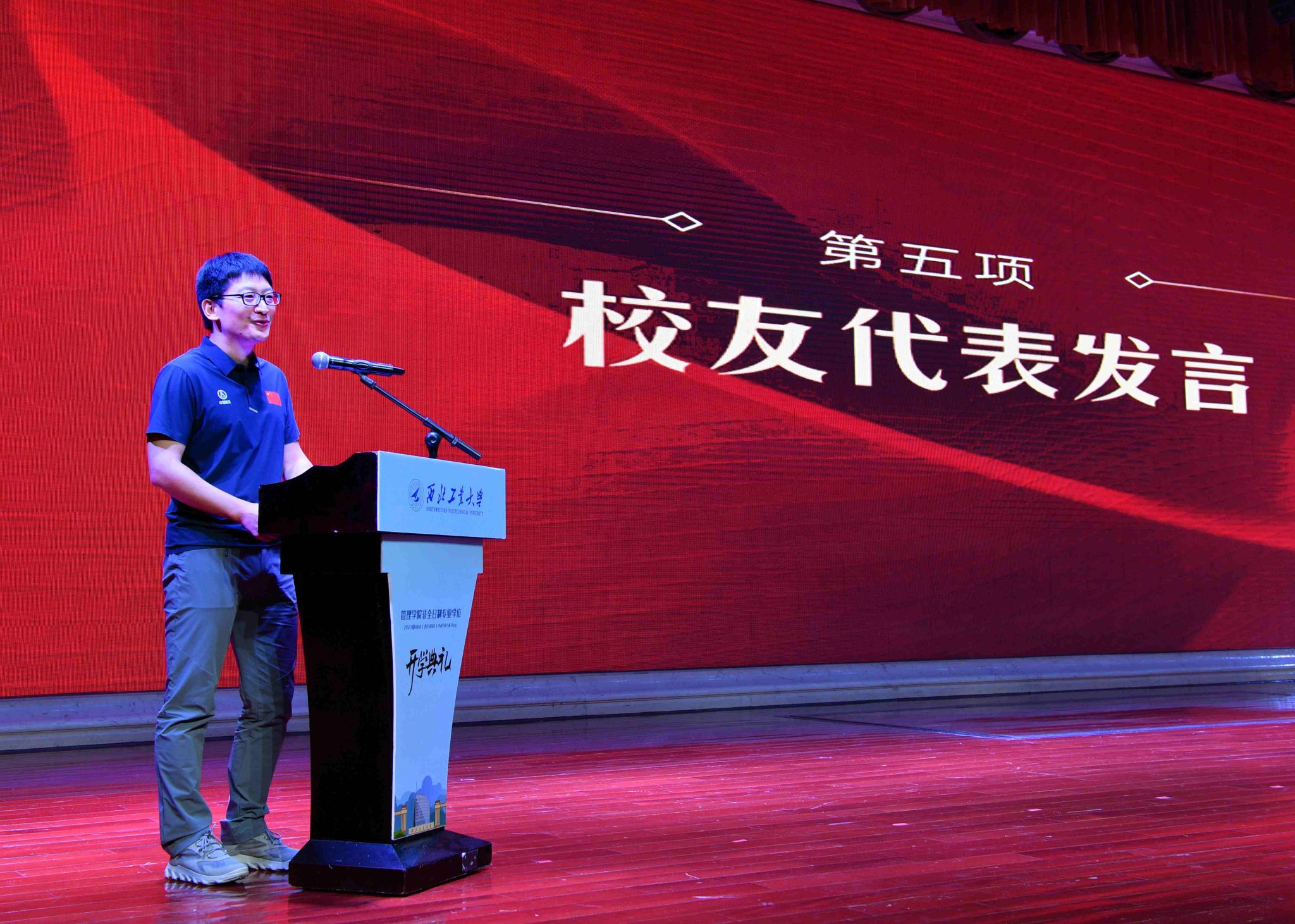 优秀校友2015级MEM、航天五院西安分院(504所)经营发展部副部长宋超也送来诚挚祝福。他首先衷心祝贺各位师弟师妹在西工大开启绚丽多彩的人生新篇章。他表示自己有幸参与我国的航天强国建设,感谢在母校学到的系统思维和知识,让他在工作中从容不迫,游刃有余;感谢在管院的学习经历让他更热爱生活。他建议学弟学妹们要树立和国家需要同行的理想,把当前的事情做到最好,敢于挑战自己的边界。也祝愿在座的学弟学妹,学业有成,前程似锦!