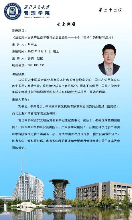 云上讲座预告:浅谈对中国共产党百年奋斗的历史经验——十个“坚持”的理解和运用