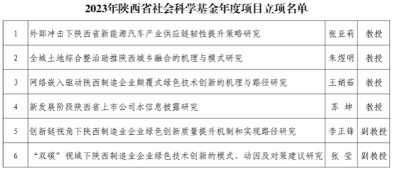 小奶猫直播 6项课题获得2023年度陕西省社会科学基金年度项目立项