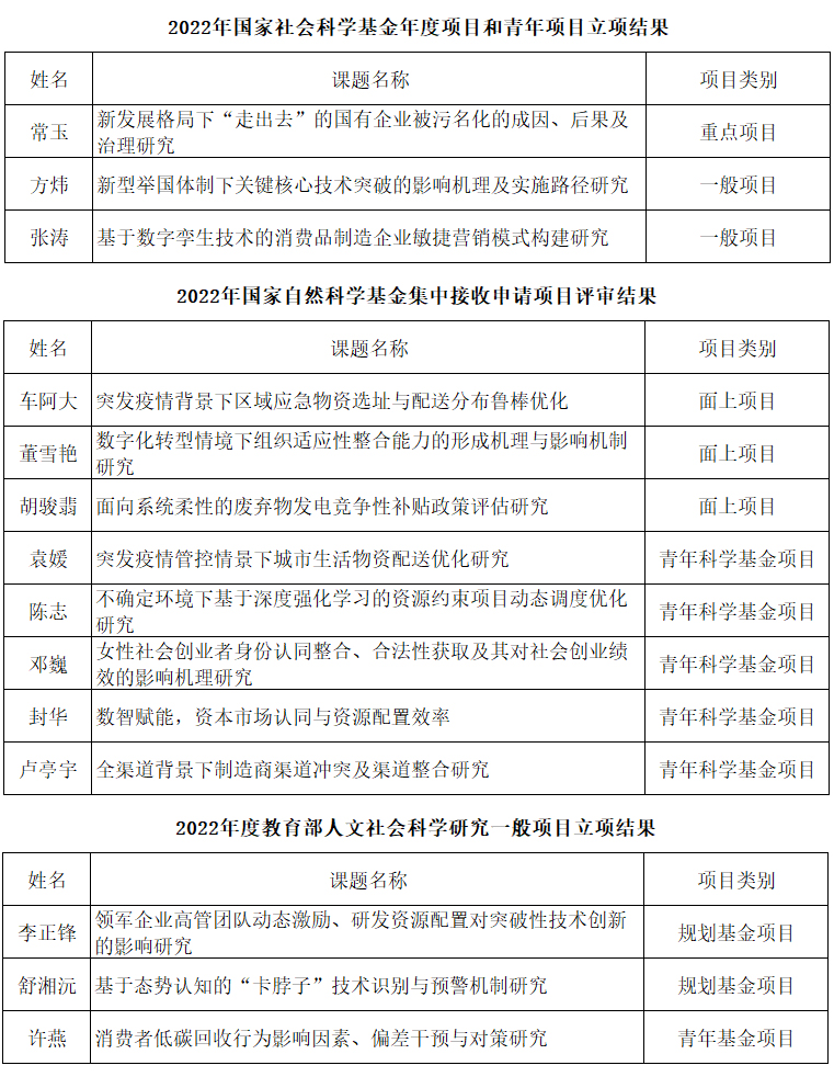 近期全国哲学社会科学工作办公室、国家自然科学基金委员会和教育部社科司相继公布了2022年度国家社科基金年度项目和青年项目立项结果、国家自然科学基金项目评审结果、教育部人文社会科学研究一般项目立项结果。小奶猫直播 共获批各类项目14项,其中国家社科基金重点项目1项、一般项目2项;国家自然科学基金面上项目3项、青年科学基金项目5项;教育部人文社会科学研究一般项目规划基金2项、青年基金1项。